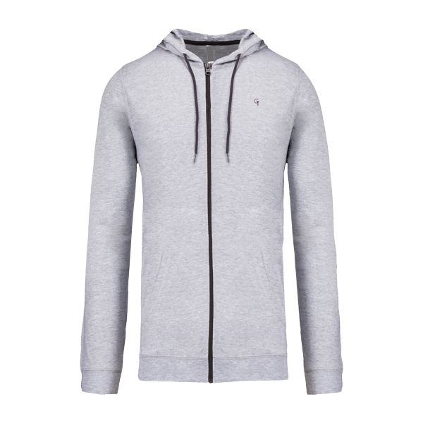 Kenmerken | Contrasterende rits en tweekleurige aanrijgkoordjes aan de capuchon. |