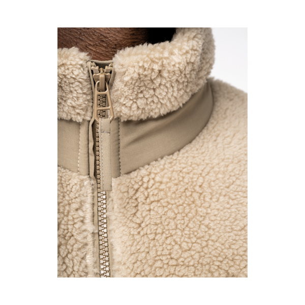 - Functionele Details: Het Sherpa Jacket is uitgerust met meerdere zakken, zowel binnen als buiten, voor praktische opbergruimte. De stevige ritssluiting en extra knopen zorgen voor een veilige en afsluitende pasvorm.