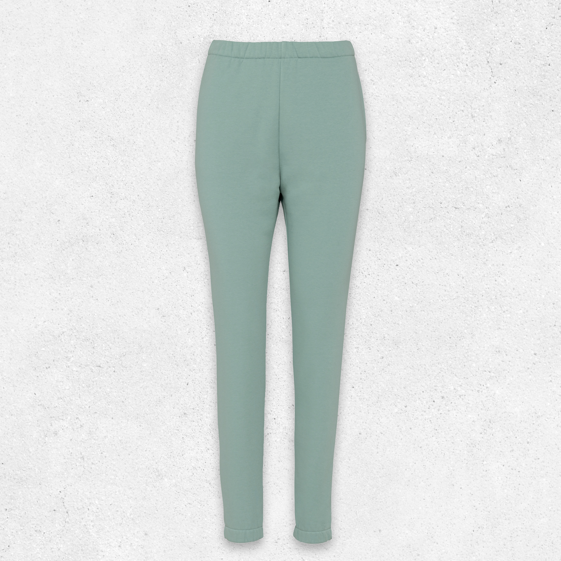 De elastische tailleband en ribboorden aan de enkels zorgen voor een silhouet dat meebeweegt met jouw dag. De zijzakken zijn subtiel, functioneel en stijlvol. Verkrijgbaar in ivory voor een minimalistische look, en in jade voor wie rust wil dragen met kleur.